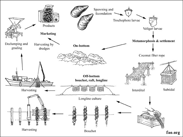 Κύκλος Καλλιέργειας Mytilus Edulis, Gallus Provincialis, Chilensis, Perna canaliculus,...